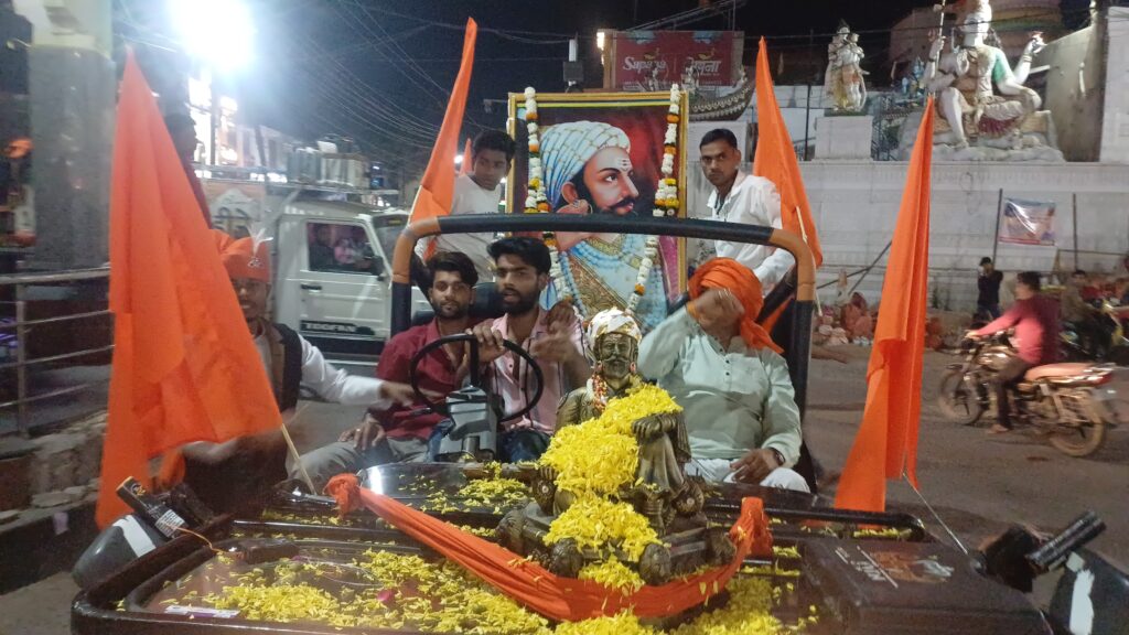 यहां पर शिवाजी के अनुयायी भक्तों ने शहर के शिवाजी चौक से एक शोभायात्रा निकाली जो कीर्ति स्तंभ, अस्पताल चौराहा, घंटाघर होते हुए वापस शिवाजी चौक पहुंची। घंटाघर पर छत्रपति शिवाजी का स्वरूप धरे कलाकार व अफजल खान का रोल कर रहे कलाकार के बीच संवादों का मंचन किया गया, जो इस बार की शोभायात्रा का विशेष आकर्षण का केंद्र था।