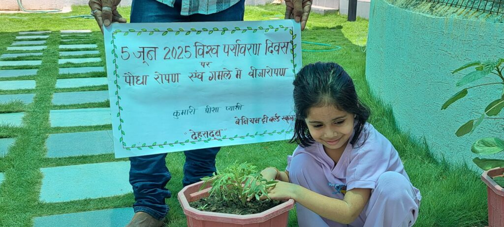 विश्व पर्यावरण दिवस के अवसर पर देहरादून से नैनीताल छुट्टियाँ मनाने आईं पूर्व नगर पालिका अध्यक्ष मनु मिश्रा की नातिन प्रीशा प्यासी ने पर्यावरण के प्रति जागरूकता फैलाने का सराहनीय कार्य किया। प्रीशा प्यासी, जो श्री प्रीतेश प्यासी एवं श्रीमती गुंजन प्यासी की सुपुत्री हैं, ने आज अपने नाना के घर में गमले में बीजारोपण कर पौधा लगाया।