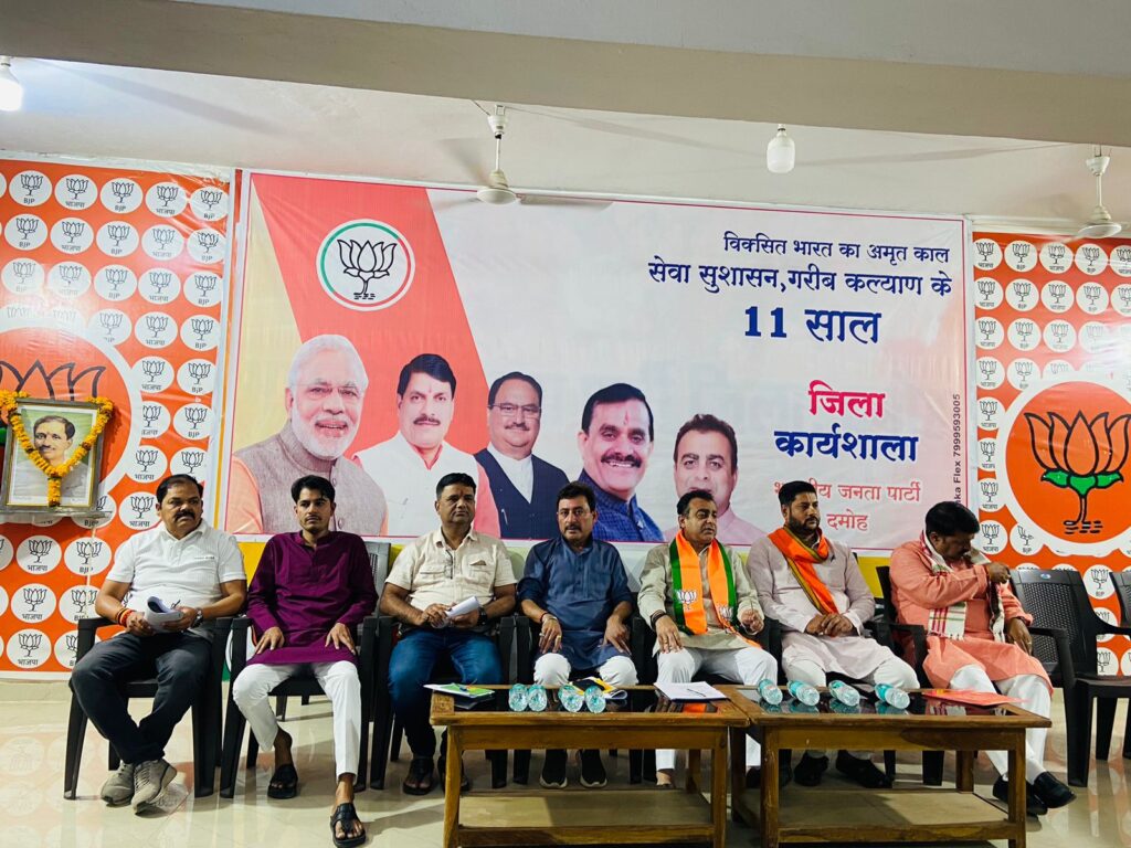 दमोह – भारतीय जनता पार्टी जिला कार्यालय में संकल्प से सिद्धि अभियान के अंतर्गत प्रधानमंत्री नरेंद्र मोदी के नेतृत्व में केंद्र सरकार के 11 वर्ष की उपलब्धियों के संबंध में सेवा, सुशासन और गरीब कल्याण की योजनाओं को लेकर होने वाले कार्यक्रमों के संबंध में जिला भाजपा कार्यालय में जिला स्तरीय कार्यशाला आयोजित की गई। जिला अध्यक्ष श्याम शिवहरे, मध्य प्रदेश सरकार के पशुपालन एवं डेयरी राज्यमंत्री स्वतंत्र प्रभार पथरिया विधायक लखन पटेल, जिला प्रभारी सतानंद गौतम, हटा विधायक उमादेवी खटीक, जिला महामंत्री सतीश तिवारी, रामेश्वर चौधरी, कार्यक्रम के जिला प्रभारी जिला उपाध्यक्ष संजय सेन, रमन खत्री, अमित बजाज, अरुण तिवारी और जिला मंत्री संजय यादव ने मां भारती और पार्टी के पितृ पुरुषों के समक्ष दीप प्रज्वलित कर कार्यशाला का शुभारंभ किया।