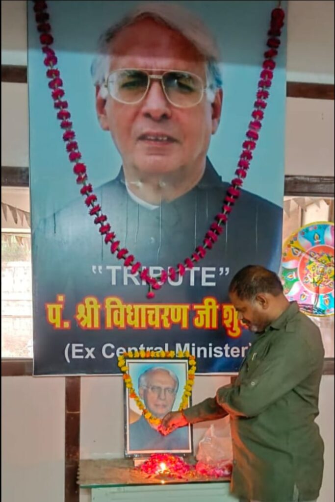सभी उपस्थितजनों ने स्वर्गीय विद्याचरण शुक्ल जी की तस्वीर पर माल्यार्पण कर, पुष्पांजलि अर्पित की और उन्हें याद करते हुए उनके राजनीतिक एवं सामाजिक योगदान को स्मरण किया।