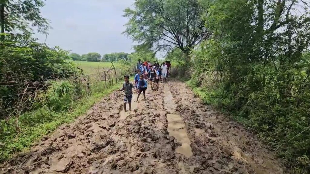 गांव तक पहुंचने वाला करीब 3 किलोमीटर लंबा रास्ता बारिश में कीचड़ और दलदल में तब्दील हो जाता है। हालत यह है कि यहां के बच्चों को स्कूल जाने के लिए चप्पल हाथ में लेकर फिसलते हुए नंगे पांव चलना पड़ता है। कई बार बच्चे फिसलकर गिर जाते हैं और स्कूल पहुंचने से पहले ही घर लौटना पड़ता है।
