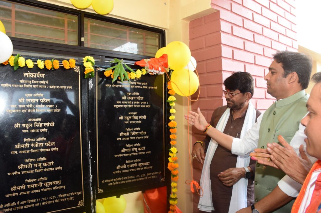 प्रदेश के पशुपालन एवं डेयरी विकास राज्यमंत्री लखन पटेल और दमोह सांसद राहुल सिंह लोधी के मुख्य आतिथ्य में आज बटियागढ़ क्षेत्र में बहुप्रतीक्षित संयुक्त तहसील भवन का लोकार्पण किया गया। करीब 7 करोड़ 95 लाख की लागत से बने इस नवनिर्मित भवन के उद्घाटन के साथ क्षेत्र के नागरिकों को एक बड़ी सौगात प्राप्त हुई है। इस मौके पर पिपरोधा में 46 लाख की लागत से बनने वाले आयुष चिकित्सालय भवन का भूमिपूजन भी सम्पन्न हुआ।