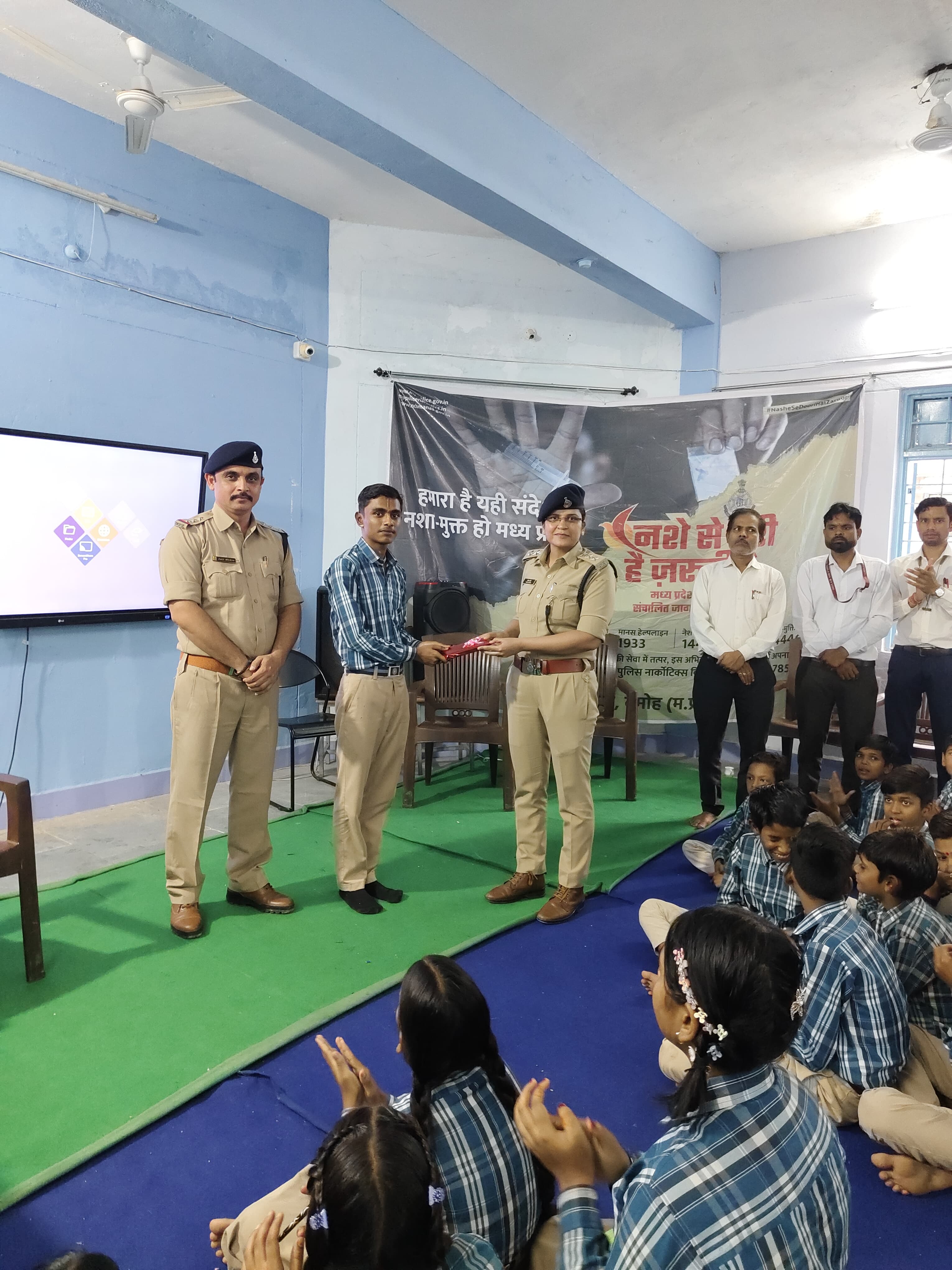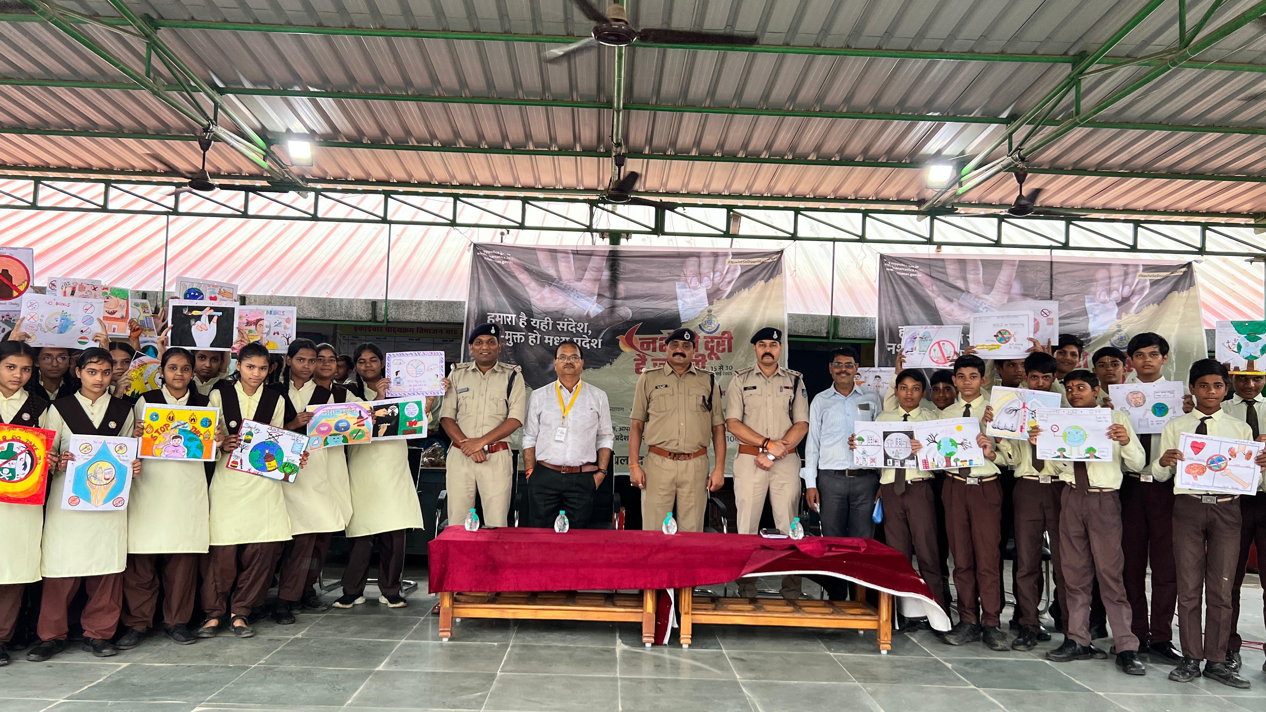 सीएसपी श्री हरिराम पांडे, निरीक्षक मनीष कुमार एवं सूबेदार अभिनय साहू की उपस्थिति में विद्यालय में प्रदर्शनी का आयोजन किया गया। बच्चों को उनके प्रयासों के लिए पुरस्कृत किया गया और नशे के दुष्परिणामों से अवगत कराते हुए शपथ दिलाई गई।