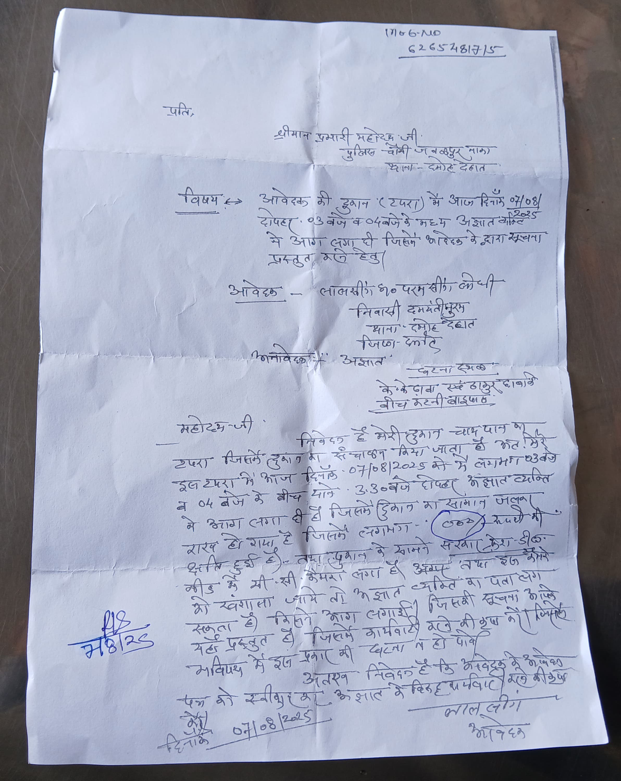 लाल सिंह, मूलतः जुझारघाट (दसोंदा) निवासी हैं, जो अपने बच्चों को बेहतर शिक्षा दिलाने के लिए दमोह में किराए के मकान में रह रहे हैं। परिवार का एकमात्र सहारा उनकी छोटी सी चाय-पान की दुकान थी। गुरुवार दोपहर करीब 2 से 3 बजे के बीच, जब वे भोजन करने घर गए थे, तभी उनकी दुकान में आग लगा दी गई। आग इतनी भीषण थी कि दुकान और उसमें रखा सारा सामान जलकर राख हो गया।