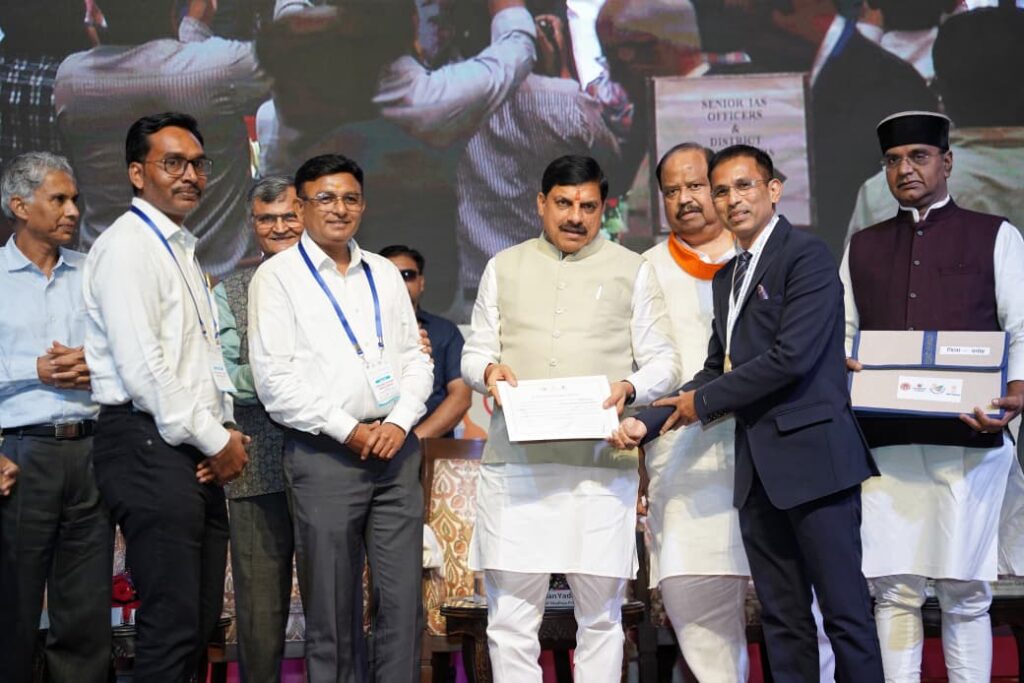 प्रदेश के मुख्यमंत्री डॉ. मोहन यादव के मुख्य आतिथ्य में भोपाल स्थित कुशाभाऊ ठाकरे इंटरनेशनल कन्वेंशन सेंटर में आज “संपूर्णता अभियान सम्मान समारोह” का भव्य आयोजन किया गया। इस अवसर पर दमोह के कलेक्टर सुधीर कुमार कोचर को उत्कृष्ट कार्यों के लिए गोल्ड मेडल से सम्मानित किया गया।