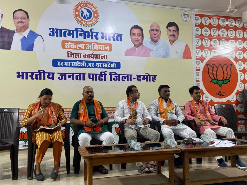 दमोह। भारतीय जनता पार्टी के “आत्मनिर्भर भारत संकल्प अभियान” (25 सितम्बर से 25 दिसम्बर) के अंतर्गत एक जिला स्तरीय कार्यशाला का आयोजन पार्टी के जिला कार्यालय में किया गया।