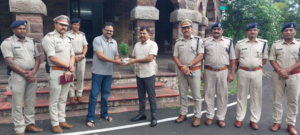 इस अवसर पर एसपी श्रुत कीर्ति सोमवंशी द्वारा डीआईजी को पौधा भेंट कर पर्यावरण संरक्षण का संदेश भी दिया गया।