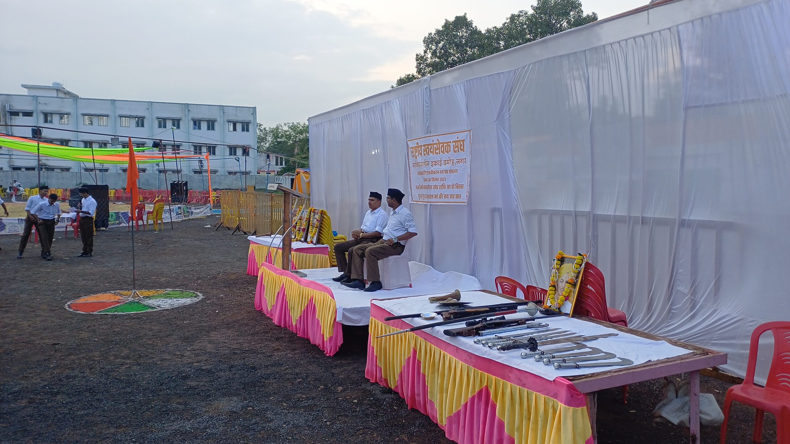 कार्यक्रम के प्रारंभ में नगर के तहसील मैदान में स्वयंसेवकों का गणवेश में एकत्रीकरण हुआ जहां पर ध्वज प्रणाम के साथ कार्यक्रम के मुख्य रूप राष्ट्रीय स्वयंसेवक संघ के जिला प्रचारक श्रीमान भईयन कुमार न और नगर संघचालक डॉ विक्रांत चौहान जी रहे।
