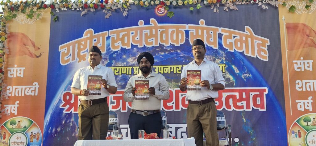 तत्पश्चात अतिथियों द्वारा संघ की मासिक पत्रिका शाश्वत हिंदू गर्जना के शताब्दी वर्ष पर प्रकाशित विशेष अंक का विमोचन किया गया। यह पत्रिका महाकौशल प्रांत के 23 हजार 914 ग्रामों के 55 हजार से अधिक घरों तक अपनी पहुंच बनाए हुए हैं। इसके पश्चात स्वयंसेवक द्वारा एकल गीत की प्रस्तुति हुई।