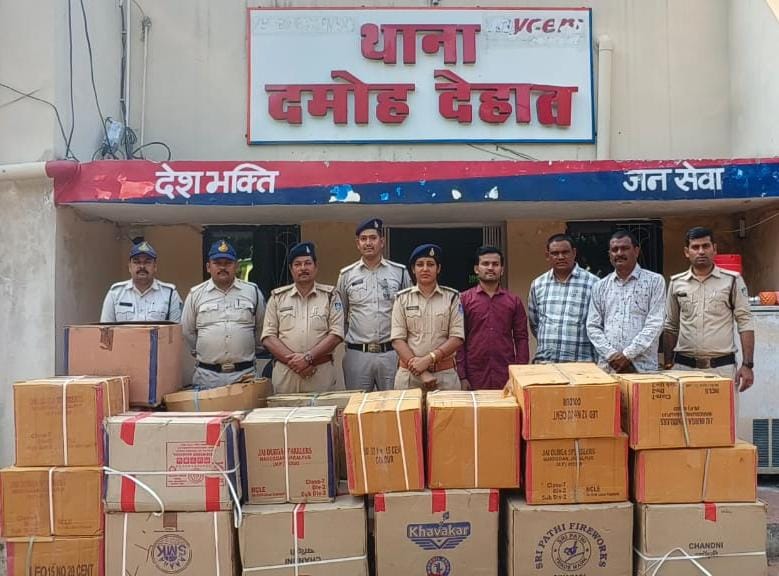 थाना दमोह देहात पुलिस की बड़ी सफलता: अवैध पटाखों के जखीरे पर कार्रवाई, 5 लाख रुपये के 60 कार्टून जब्त, 2 गिरफ्तार..