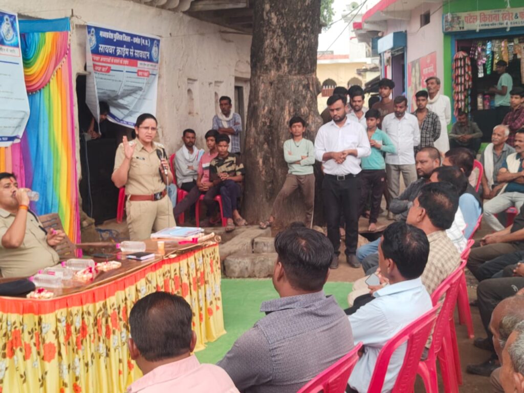 दमोह। पुलिस अधीक्षक श्रुतकीर्ति सोमवंशी के निर्देशन में, अतिरिक्त पुलिस अधीक्षक सुजीत सिंह भदौरिया, अनुविभागीय अधिकारी (पुलिस) पथरिया सुश्री प्रिया सिंधी के मार्गदर्शन तथा थाना प्रभारी हिंडोरिया धर्मेंद्र गुर्जर के नेतृत्व में आज ग्राम स्तर पर जनसंवाद एवं राष्ट्रीय साइबर जागरूकता अभियान का आयोजन किया गया।