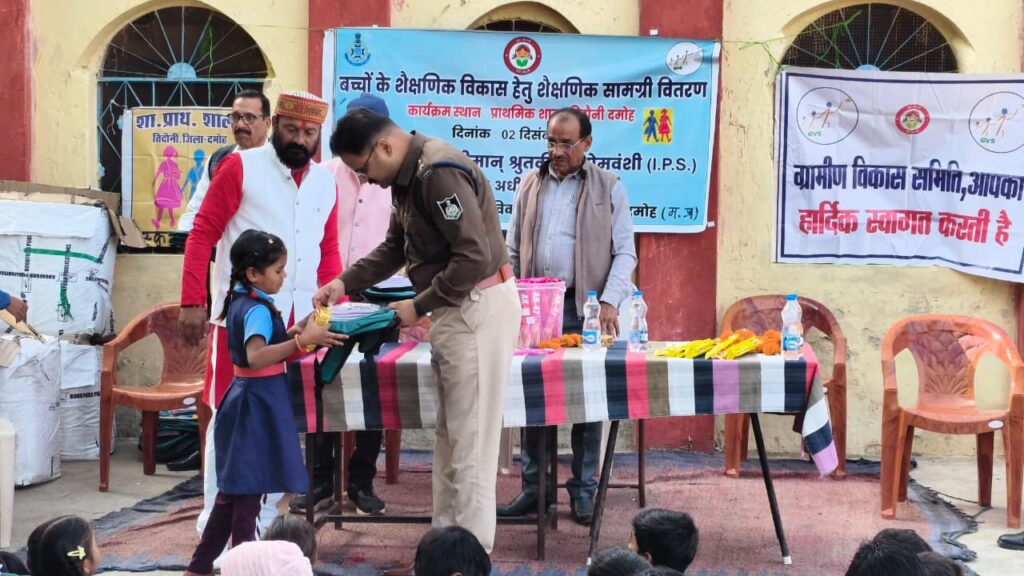 कार्यक्रम में मुख्य अतिथि के रूप में पहुंचे दमोह पुलिस अधीक्षक (IPS) श्रुतकीर्ति सोमवंशी ने बच्चों से आत्मीय संवाद स्थापित करते हुए उनका मनोबल बढ़ाया। उन्होंने बच्चों से पढ़ाई के महत्व पर सवाल पूछा— “पढ़ाई क्यों ज़रूरी है?” इस पर छोटे-छोटे बच्चों ने उत्साहित होकर उत्तर दिया— “डॉक्टर बनते हैं, इंजीनियर बनते हैं, पुलिस बनते हैं, बड़े अधिकारी बनते हैं।”