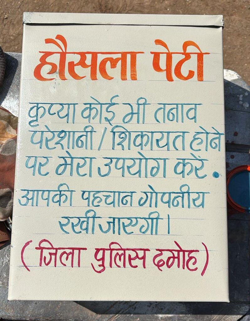 बच्चों की सुरक्षा सुनिश्चित करने, उनकी समस्याओं के समय पर समाधान और आत्मविश्वास को मजबूत करने के उद्देश्य से दमोह पुलिस अधीक्षक द्वारा एक अभिनव पहल की शुरुआत की गई है। इस पहल के अंतर्गत जिले के समस्त शासकीय एवं निजी विद्यालयों में “हौसला पेटी” स्थापित की गई है।