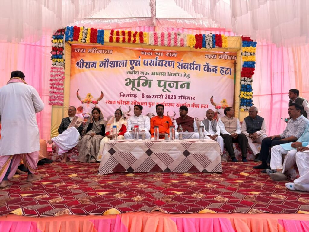 हटा नगर स्थित श्रीराम गौशाला एवं पर्यावरण संवर्धन केंद्र में रविवार को नवीन गऊ आवास निर्माण हेतु भूमिपूजन कार्यक्रम का आयोजन किया गया। कार्यक्रम में प्रदेश के पशुपालन एवं डेयरी विभाग के राज्यमंत्री श्री लखन पटेल, सांसद श्री राहुल सिंह, विधायक हटा श्रीमती उमा देवी खटीक, वरिष्ठ साहित्यकार पं. श्याम सुंदर दुबे, जिला पंचायत अध्यक्ष श्रीमती रंजीता गौरव पटेल, जनपद पंचायत अध्यक्ष श्री गंगाराम पटेल एवं पूर्व विधायक श्री गंगाराम पटेल विशेष रूप से उपस्थित रहे।